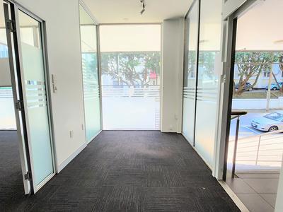 Split into two parts, we have the main space in front right near the entrance to the building, along with the kitchenette and two additional office spaces at the back.