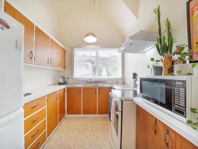 Soaked in all-day sun, this elevated home delivers panoramic Wellington views that will have you pausing mid-coffee just to admire them. Inside, the living room features chapel ceilings, adding a sense of space and drama you wouldn't expect from such a well-designed home - think cosy, not cramped.