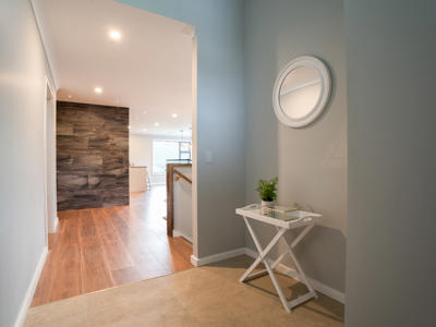 The attention to detail is first-class, and spans bespoke lighting, Italian tapware, European appliances, sound reduction linings, ply lining to all utility rooms, tiled bathrooms, chic glass balustrading, solar panels, zoned central heating, a feature gas fireplace, awesome storage, and custom wardrobe systems throughout.