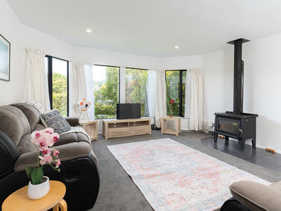 There's a woodburner in the lounge plus a heat pump in the family room, with double glazing through most of the house. Nice to have's include a separate laundry, and a double internal access garage and a flat driveway.