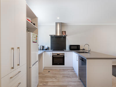 • Modern kitchen with breakfast bar, dishwasher, oven, electric cooktop, rangehood and plumbed for front loader washing machine