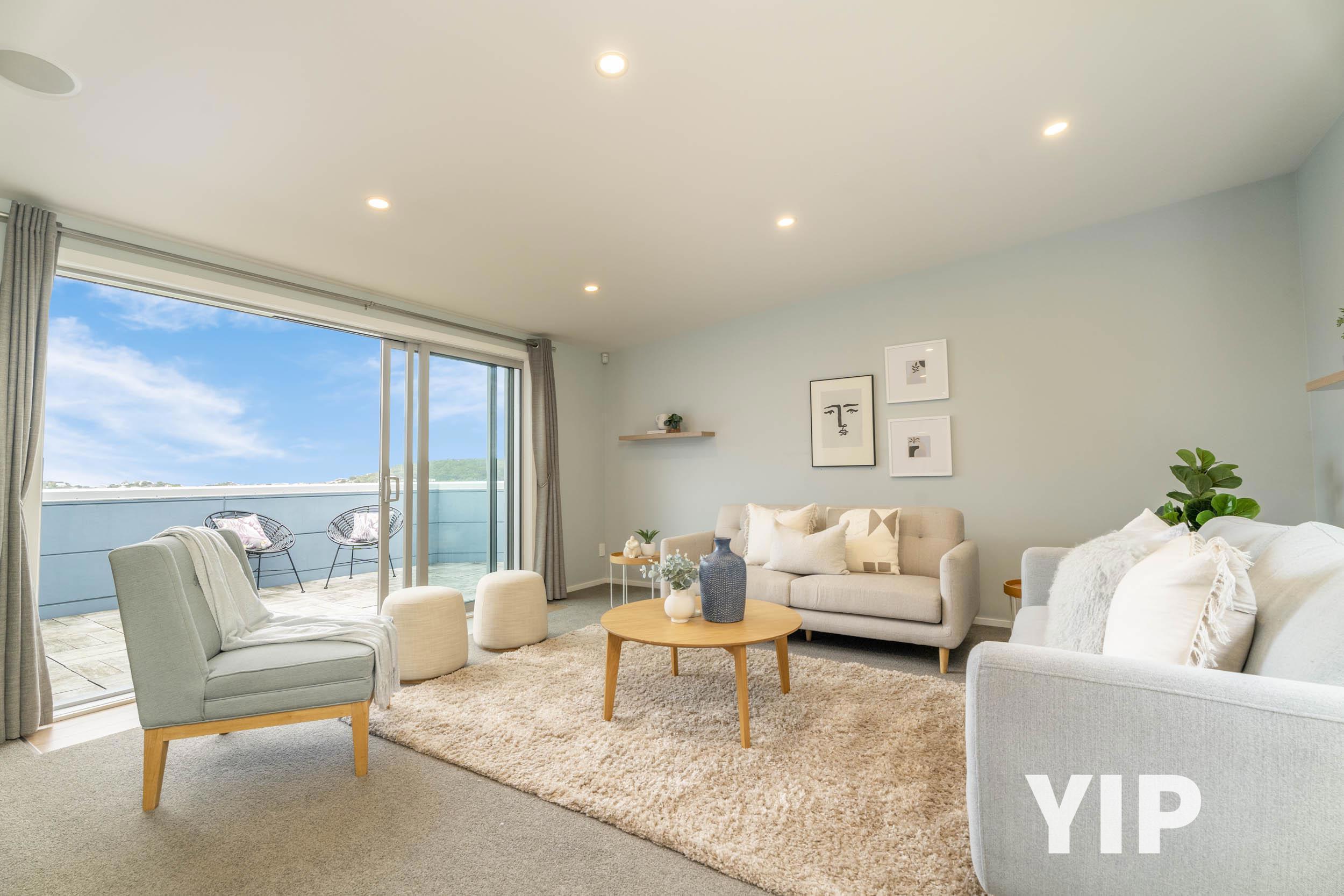The upper level is dedicated to the main living space, featuring a fabulous open-plan layout that encompasses the living, dining, and modern kitchen areas. There is also a generous office with a great view. From the living area, you can step out onto a sunny east-facing balcony with stunning views of Khandallah, or relax in a private, fully fenced rear area with lawn and extensive decking. The wrap-around walkway connects both areas, offering the perfect setting for entertaining friends and family.